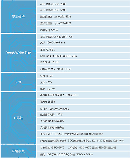 ●连续读250MB/S,连续写220MB/S平均存取时间0.1ms