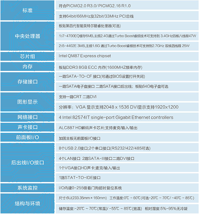 CP6-H17BC6是一款基于Intel Core QM87芯片组架构刀片Compact pci板;